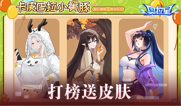 卡皮巴拉小黄豚联动视频邀你共赏,完成任意3个打榜任务即可领取一个随机皮肤。
